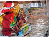One small environmental concession is a clipping about recycling in their area taped to the refrigerator.