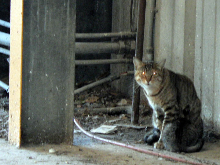 A mama cat and three little kittens eyed us warily as we attempted to interview them about their jobs. No luck. They scurried through a hole in the wall. I asked Rebecca why kitties would want to live in such a loud, scary place with big trucks constantly thundering through. Of course, it’s because there are so many rodents for them to eat. The cats do more than look cute for visitors. They help with essential pest control.