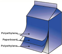 Paper milk cartons are lined with two layers of polyethylene, inside and out. Many people are under the mistaken belief that these cartons are waxed. In fact, although the original paperboard milk cartons were coated with paraffin wax, they haven’t contained wax since the 40’s when polyethylene became the waterproofing material of choice.