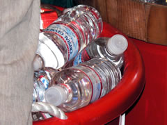 Huh??? I asked the Rainbow representative why they were selling bottled water, and she replied, “We’re not selling it; we’re giving it away!” Oh, how silly of me. That makes all the difference in the world. NOT! What were they thinking? It’s not like everyone else was doing it. While a few vendors were selling their own juices and energy drinks in bottles, not a single other vendor was thoughtless enough to bring bottled water. So I asked, “Why, Rainbow Grocery, why?” And the rep showed me a stack of “Think Outside The Bottle” brochures and said she was educating the people who took the water by giving them a brochure with each bottle. Once again, “Huh???” Why not educate people by NOT GIVING OUT BOTTLED WATER IN THE FIRST PLACE? How about handing them a brochure and pointing them to the water station if they’re thirsty?