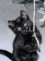 I am Soots and this is one of my new favorite toys. It is just a long piece of twine with one end attached to a human (not in the picture.) No plastic. No paint. No feathers or bells or sparkly things. You would think that it would be boring, and you would be very wrong. As long as the human doesn’t get tired and forget to keep jiggling the string, we will jump and twist and make kitty pretzels all night until we pass out from the sheer euphoria of life. This is a true fact. However, most humans give up too soon and never discover this for themselves. We still have much training of them to do.