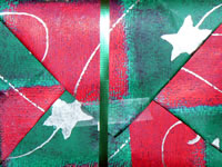 one thing though – i like to re-use things (i.e. old calendars) instead of wrapping paper. often the calendar sheets are not large enough so i tape together a couple (it makes an interesting pattern if they are from the same calendar.