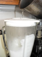 Place warm water in a blender. Cover the blender, leaving open the small opening in the cover. With the blender running on high speed, slowly pour in the beeswax-oil mixture in a thin stream. When most of the oil has been added, the mixture should begin to thicken.