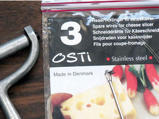 Finally, one hardware store salesperson recommended I check a kitchenware type of store instead. So I called Sur Le Table, which seems to have locations in many states, and sure enough, they carried stainless steel replacement wires for cheese slicers. Unfortunately, as you can see below, they come in a plastic zip-lock bag.