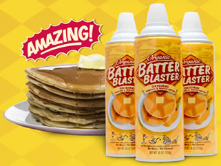 Batter Blaster. It’s organic. It’s fast and easy. Just squirt into a pan and fry up some pancakes in seconds rather than minutes. What could be better?