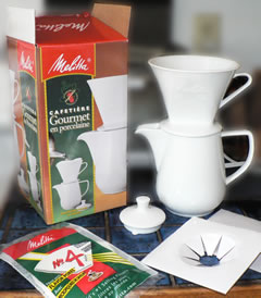 So hello new coffee friends. It’s a good thing I bought you last week before Crunchy Chicken’s Buy Nothing Challenge began on April 1. Too bad you came with a plastic bag of bleached white coffee filters, which the above-mentioned Freecycler is going to enjoy. But considering that you are all porcelain, come in a cardboard box with only a tiny bit of cardboard inside and no plastic packaging, and will last me for many, many years if I’m careful, it’s a small price to pay. (Maybe I should send the filters back to Melitta with a note, but at the moment, I have too many other things going on.)