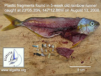 Anna: Our plastic crap is now entering the food chain! So check this out: a fish [pictured above] my fiancé caught aboard JUNK. After filleting it, he found 17 plastic fragments in its stomach. Plastic contamination is becoming a clear human health issue.
