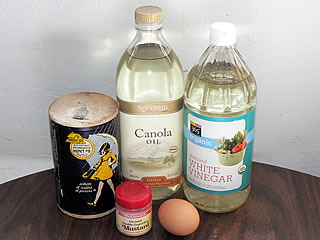 In the case of mayonnaise, this third option also happens to be really easy, as I discovered today when I whipped up a batch of homemade mayo from a recipe passed on to me by an octogenarian friend who swears she has never bought a jar of prepared mayonnaise in her life. Here are the ingredients: