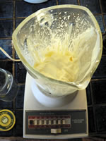 This recipe came from the instructions for my friend’s Waring blender. Next time, I’m going to try it using a wire whisk instead, as per these instructions from Epicurious.com. Less (electric) energy. Less cleanup mess.