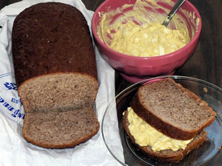 For the egg salad, I combined the mayo and eggs with Goulden’s spicy mustard from a jar we already had. But once that’s gone, I’ll try making it from scratch as well. Here’s info about making mustard from powder or seeds. Once my mustard powder in the plastic container is used up, I can replace it with bulk mustard powder or seeds from Whole Foods.