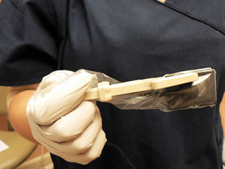 An added benefit is less plastic film waste. As you can see below, the only disposable plastic is the cover over the sensor, which is used to image the entire mouth.