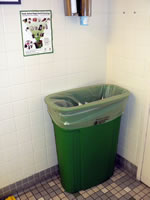 The ferocious flu that hit me several weeks ago resulted in quite a few trips to Kaiser Permanente. During one of those visits, I noticed something in the public restroom I’d never seen there before: a green bin and green liner… telltale signs of composting afoot. I moved in to take a closer look. Sure enough… compostable liner and a sign above the bin instructing users to deposit paper towel waste there.
