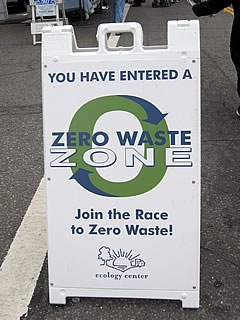 The Berkeley Farmers Market provides corn-based compostable BioBags instead of plastic. In Berkeley, compostable bags are actually picked up curbside and composted. Still, recognizing that corn-based bags are not a perfect substitute, the Berkeley vendors charge .25 per compostable bag in order to encourage customers to bring their own reusable bags.