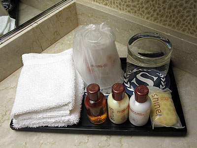 The Sheraton provides many individually-wrapped amenities. Take a look at what is provided in the bathroom. Also, a hair dryer (not shown.)