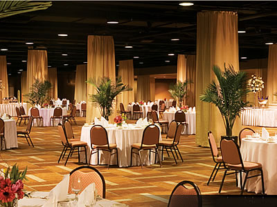 During the conference at the Sheraton, meals were served in the ballroom. Wait staff took our dishes away.