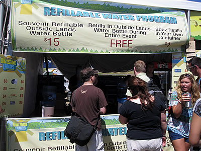I was heartened to see the stations being used by many people who brought their own bottles. That said, the system was not all I could have wished for. True to a festival guard’s declaration to me last year that they had “no intention of providing free water to everyone,” Outside Lands brought in 5-gallon jugs of Arrowhead water and sold each 20-ounce refill for $1. Or if you bought an Outside Lands branded reusable bottle, refills were free throughout the festival.