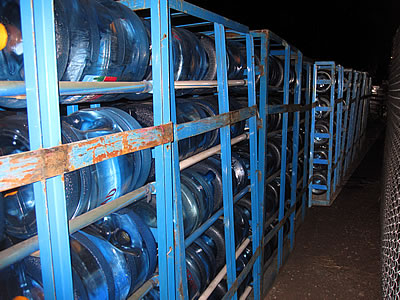 Now certainly, these jugs produce much less waste than individual plastic bottles because they are reused over and over again. One problem, though, is that they are made from polycarbonate, the kind of plastic that contains and can leach BPA. But an even bigger issue I have is with the idea of shipping in water from somewhere else and charging for it.