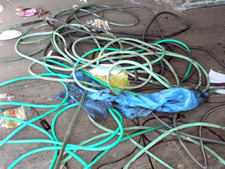 That recycling symbol on the bottom of a container does not necessarily mean the item can be recycled in your area. Some cities collect only narrow-necked bottles. Others collect only #1 or #2. Most do not want plastic bags in the recycling bin because they can seriously interfere with the sorting machines (I’ve witnessed this problem first-hand). Here are a few other items that routinely cause these machines to jam. These photos were taken at the Davis Street Recycling Center in San Leandro, California.